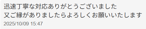 お客様のお声No.204【迅速丁寧な対応ありがとうございました 又ご縁がありましたらよろしくお願いいたします】