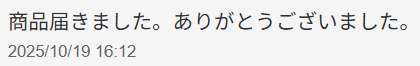 お客様のお声No.208【商品届きました。ありがとうございました。】