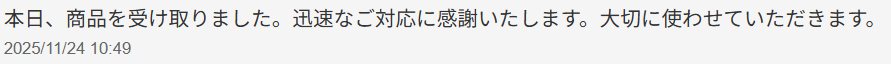 お客様のお声No.215【本日、商品を受け取りました。迅速なご対応に感謝いたします。大切に使わせていただきます。】