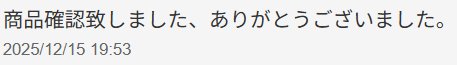 お客様のお声No.222【商品確認致しました、ありがとうございました。】2025年12月15日