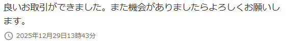 お客様のお声No.226【良いお取引ができました。また機会がありましたらよろしくお願いします。】
