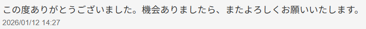 お客様のお声No.230【この度ありがとうございました。機会ありましたら、またよろしくお願いいたします。】