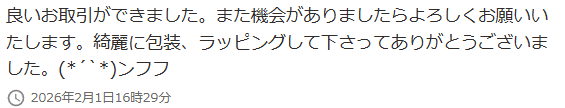 お客様のお声No.238【良いお取引ができました。また機会がありましたらよろしくお願いいたします。綺麗に包装、ラッピングして下さってありがとうございました(*′'*)ンフフ】