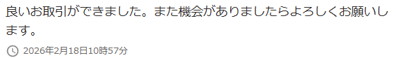 お客様のお声No.248【良いお取引ができました。また機会がありましたらよろしくお願いします。】2026年2月18日