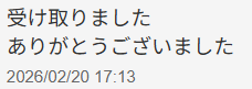 お客様のお声No.250【受け取りました ありがとうございました】2026年2月20日