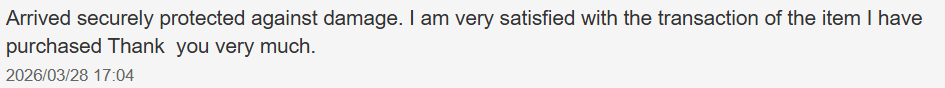 お客様のお声No.262【 Arrived securely protected against damage. I am very satisfied with the transaction of the item I have purchased Thank you very much.】