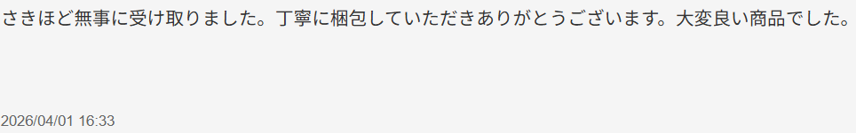 お客様のお声No.264【さきほど無事に受け取りました。丁寧に梱包していただきありがとうございます。大変良い商品でした。】