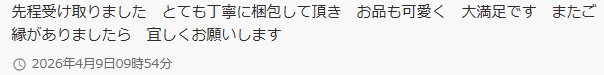 お客様のお声No.269【先程受け取りました とても丁寧に梱包して頂き お品も可愛く 大満足です またご縁がありましたら 宜しくお願いします】