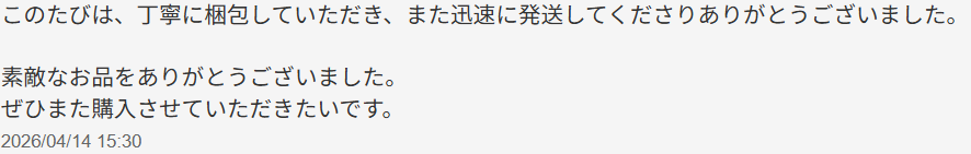 この度は早速のお受取りならびに、当店をご利用頂きまして誠にありがとうございます。