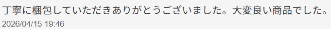 お客様のお声No.277【丁寧に梱包していただきありがとうございました。大変良い商品でした。】