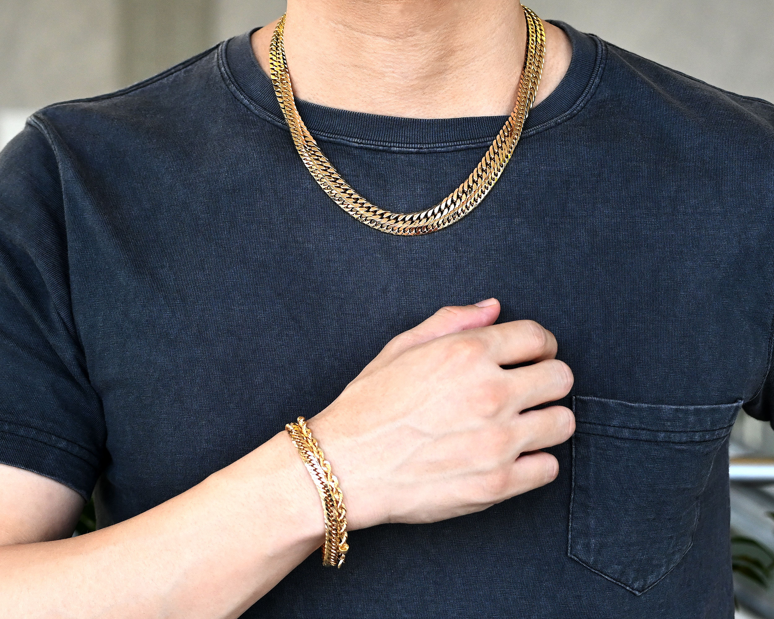 6面ダブルカットはいつの時代にも幅広い年齢層に人気があり、喜平チェーンの中でも代表的なデザインとして親しまれています。〇地金製品の資産価値