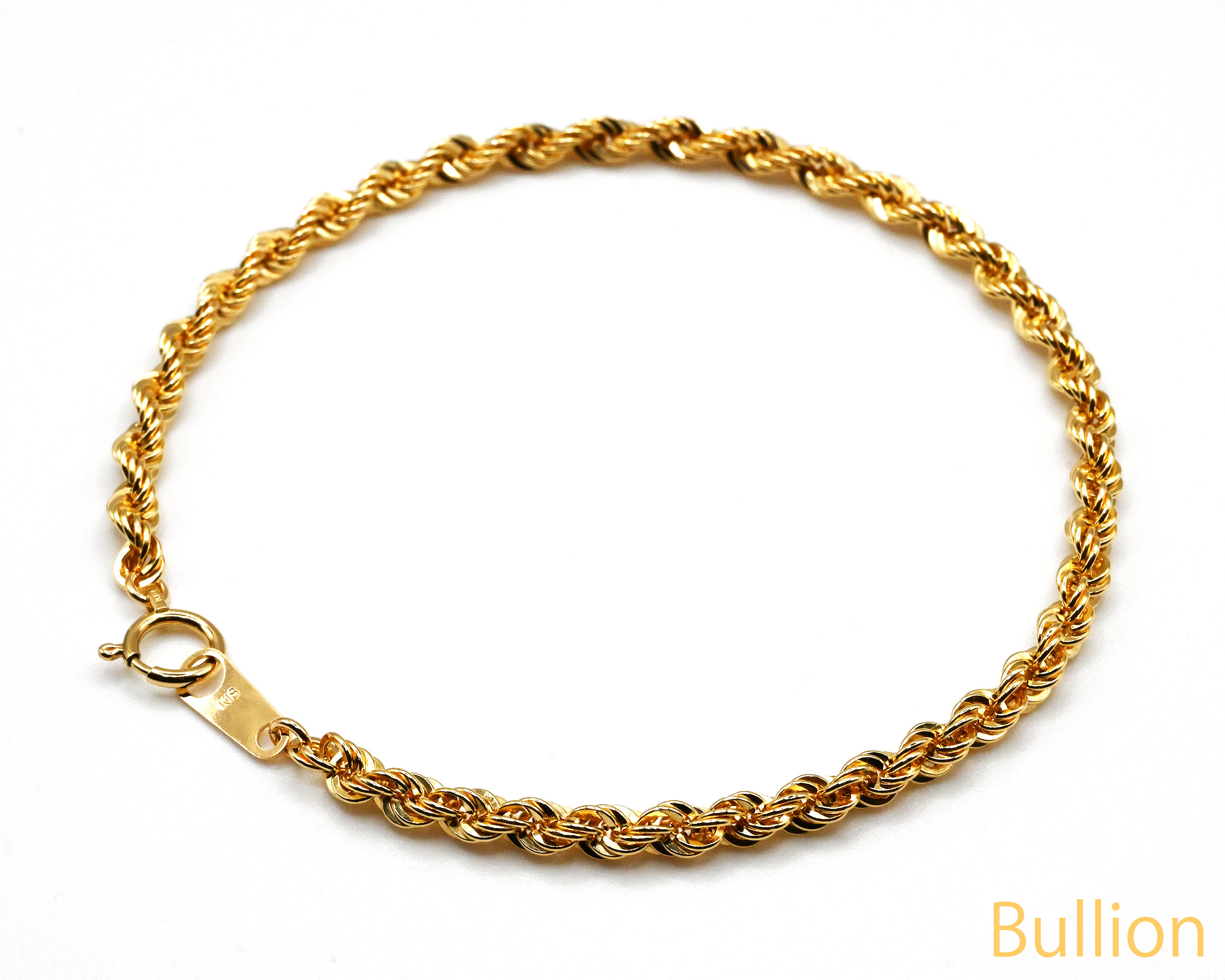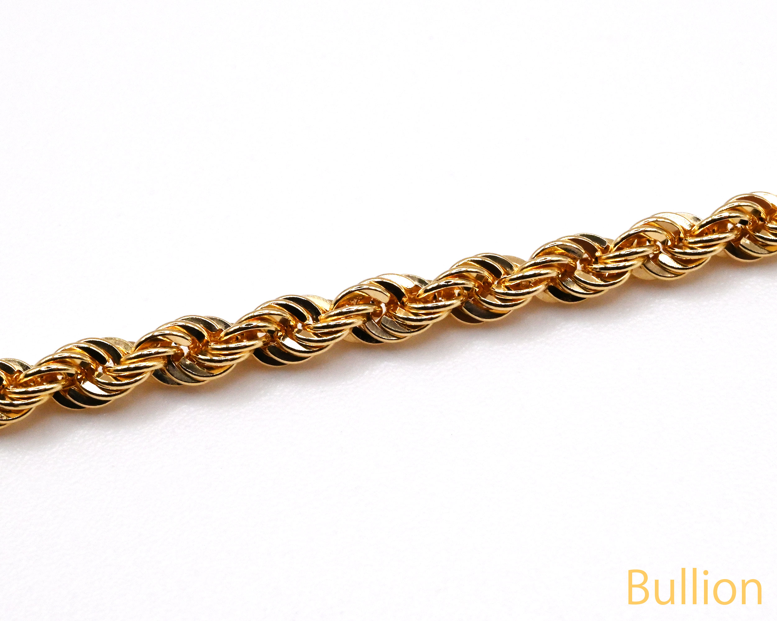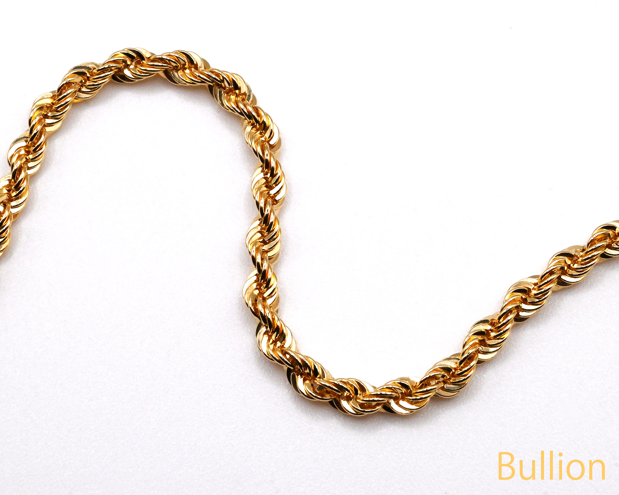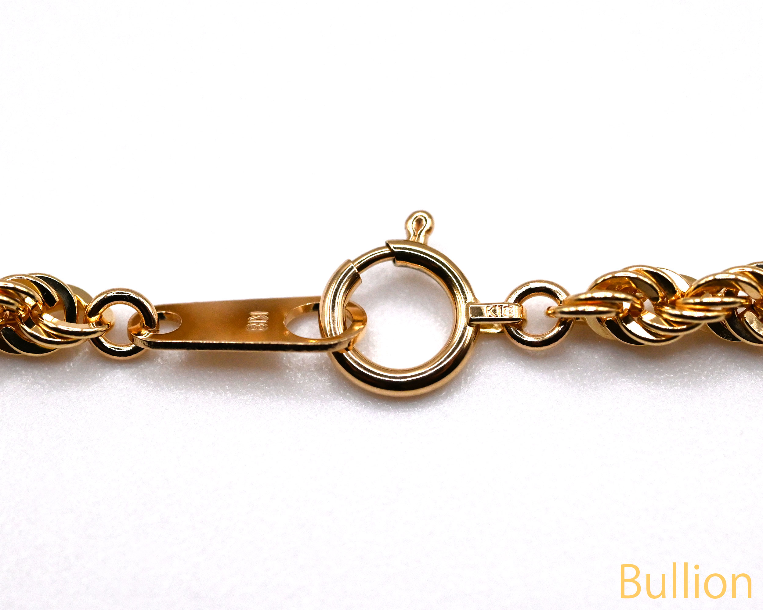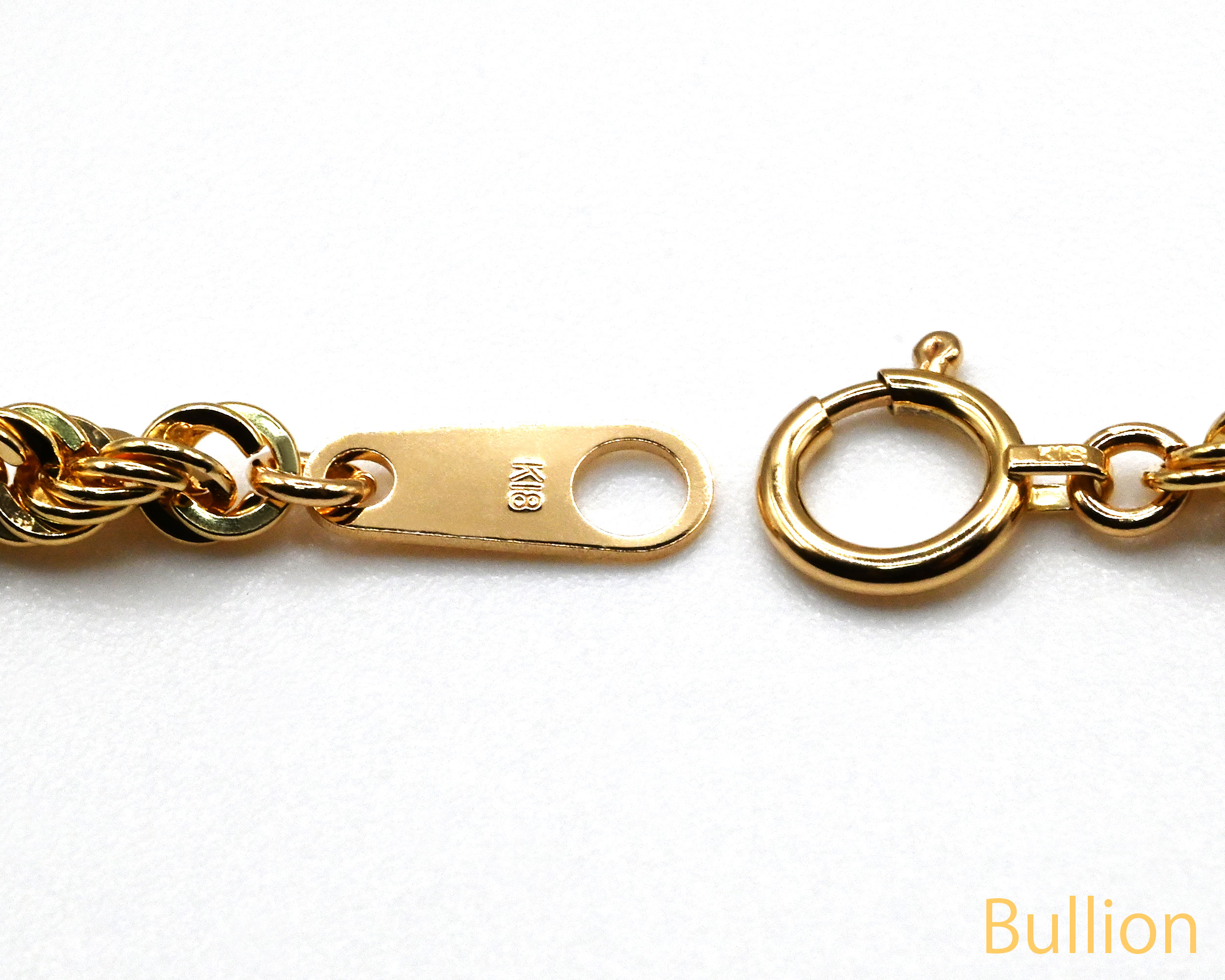 高い作製技術により縄状にデザインされたK18ロープチェーン。入り組んだデザインにより光の反射が良くゴールドの輝きを存分にお楽しみ頂けます。サイズ18cmはメンズ、レディース共に人気の長さです。