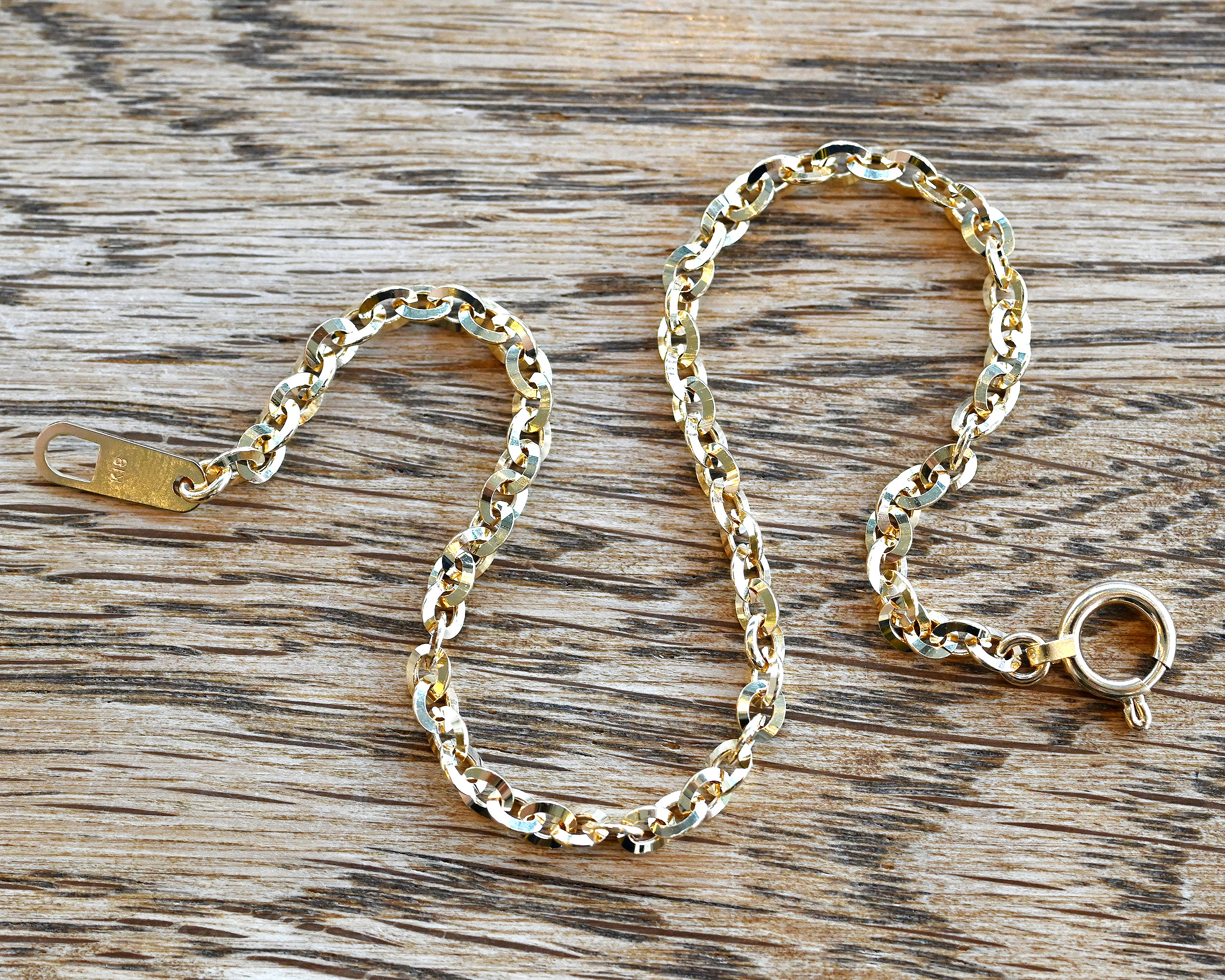K18 オーバルアズキブレスレット 【幅3.0mm×長さ20cm】