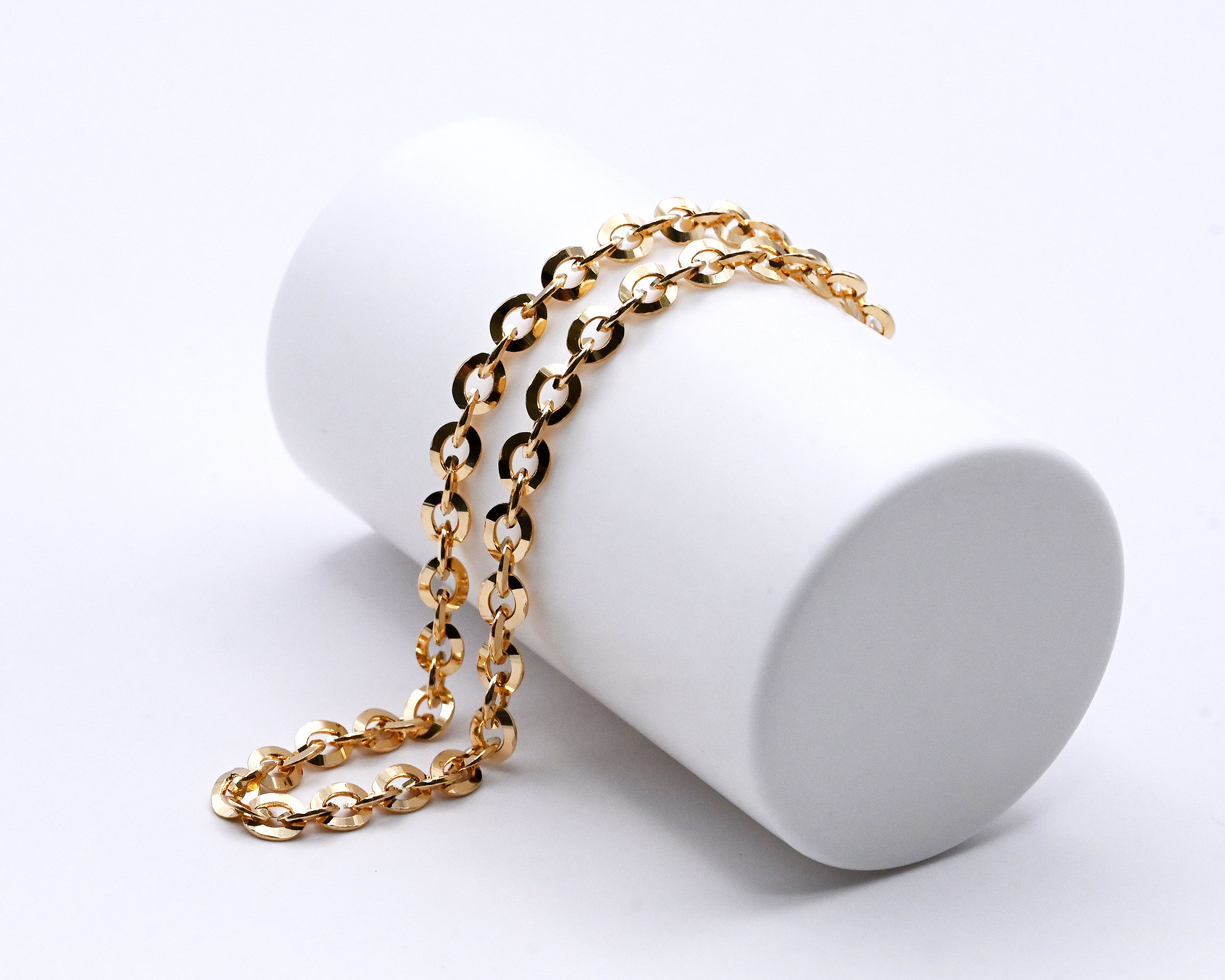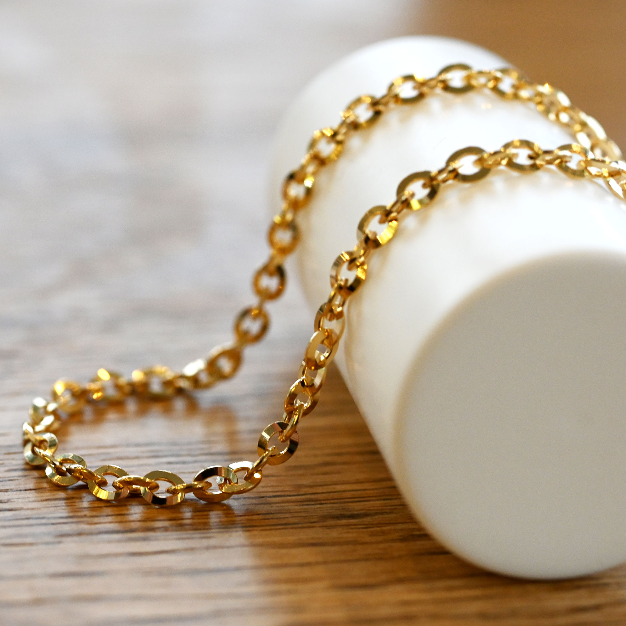 ラウンドされた楕円形が特徴の18金オーバルアズキチェーン。 線形幅は3.0mmと程よいボリューム感があり、様々なシーンに溶け込む洗練されたデザインは ユニセックスに、そして毎日のコーディネートに重宝頂けます。