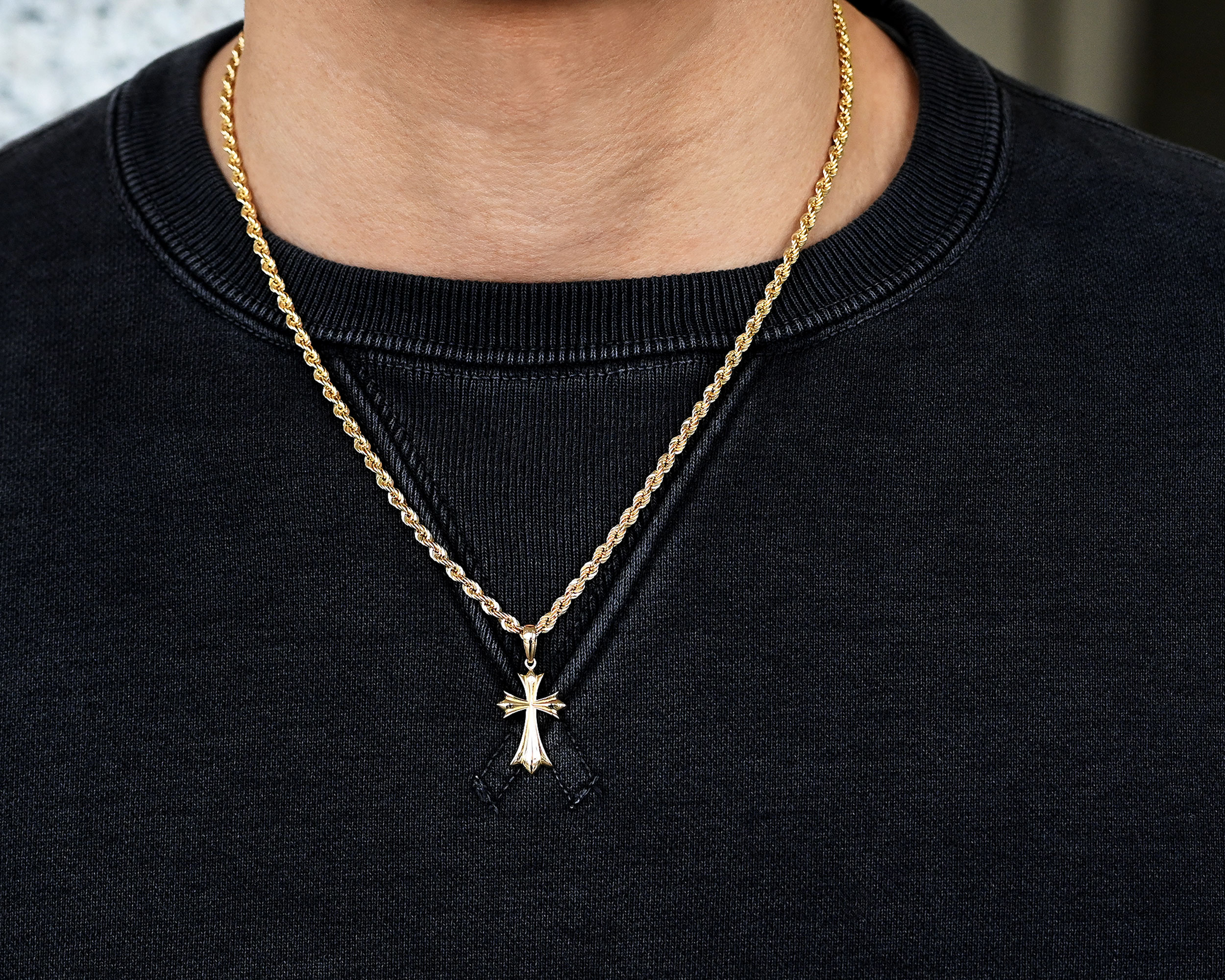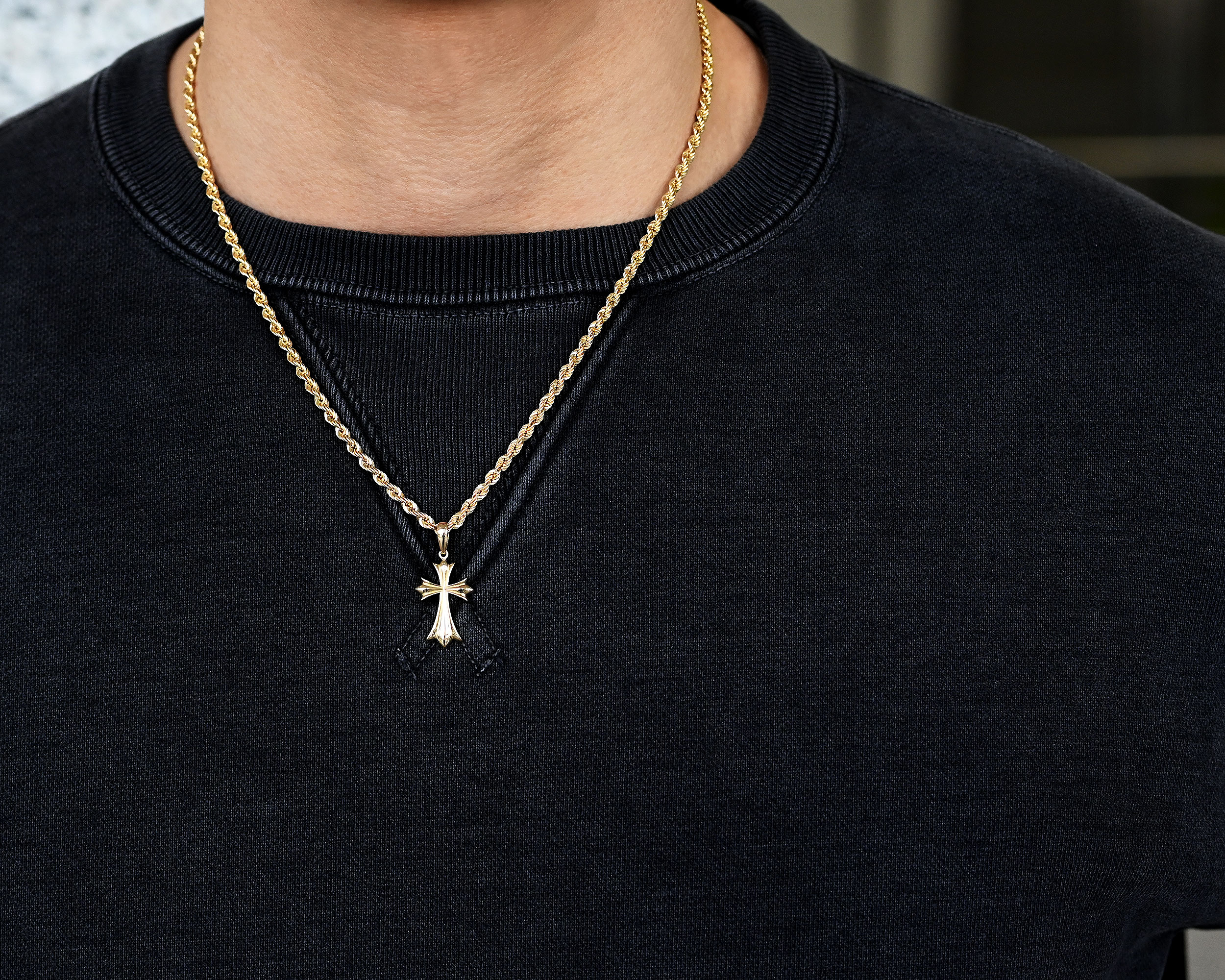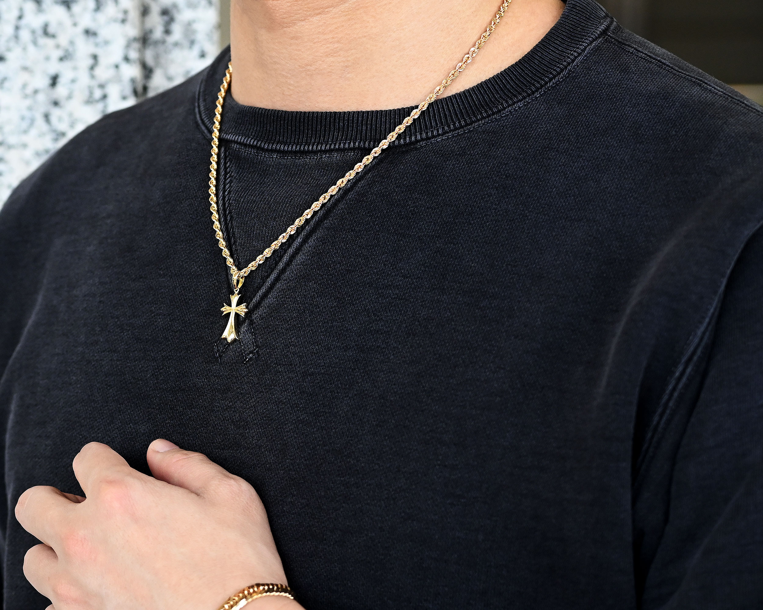 滑らかな曲線で描かれたクロスペンダントはファッションに馴染みやすく