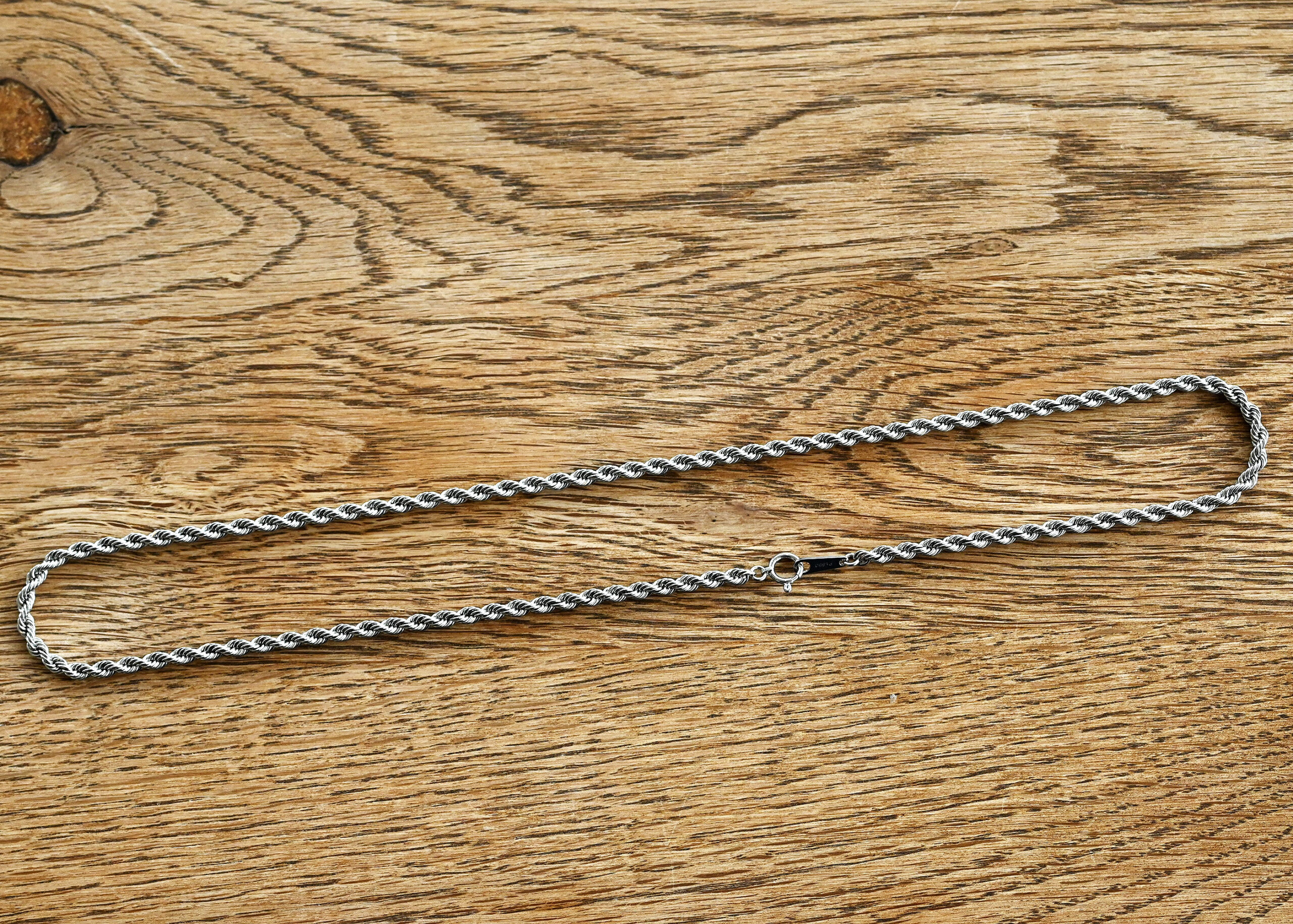 高い作製技術により縄状にデザインされたPt850プラチナロープチェーン。入り組んだデザインにより光の反射が良く優雅なネックレスはプラチナの輝きを存分にお楽しみ頂けます。