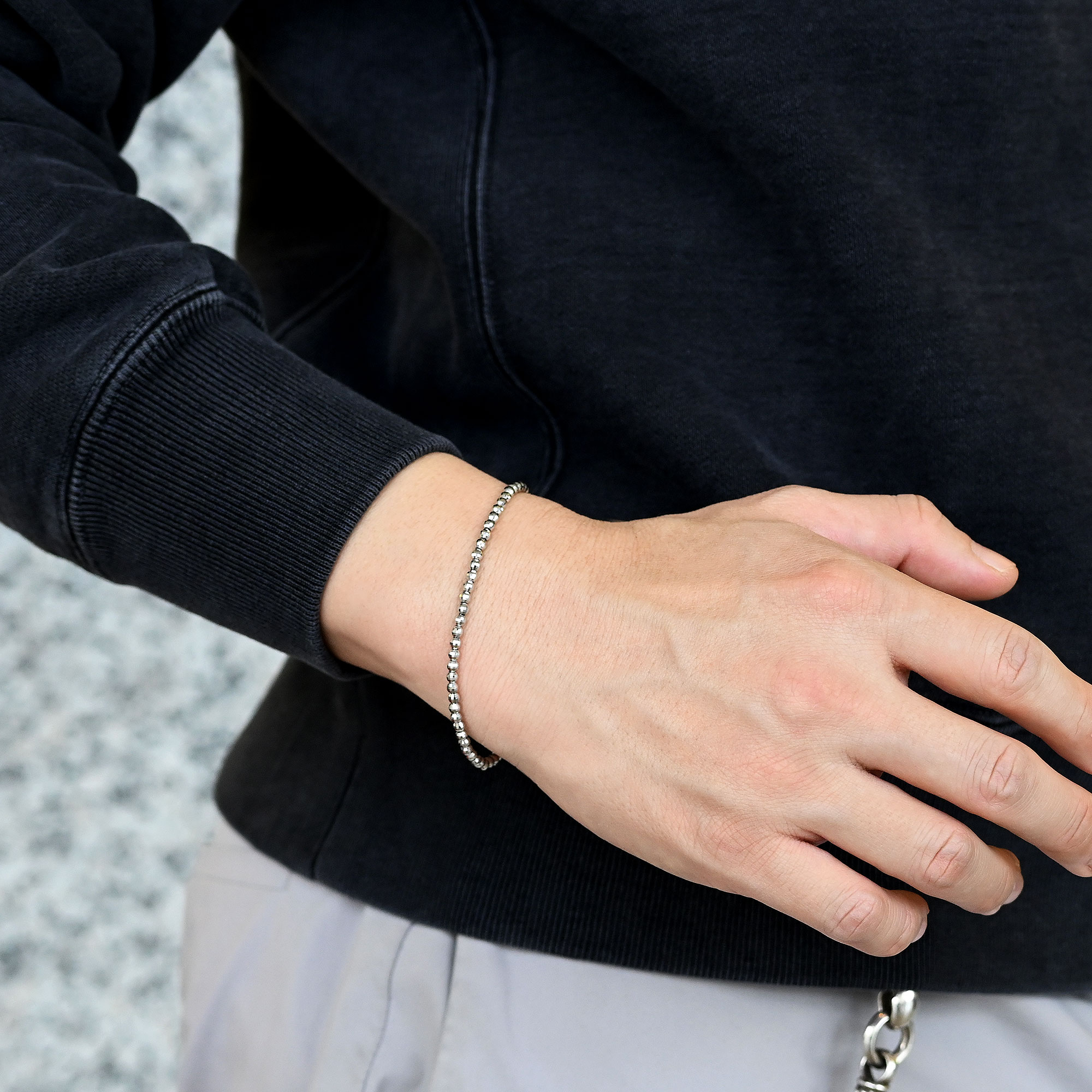 光の反射が良いミラーカットボール状にカットされたカットボールを連ねたブレスレットは線形幅が3.0mmあり、ボリューム感とプラチナの輝きを存分にお楽しみ頂けます。