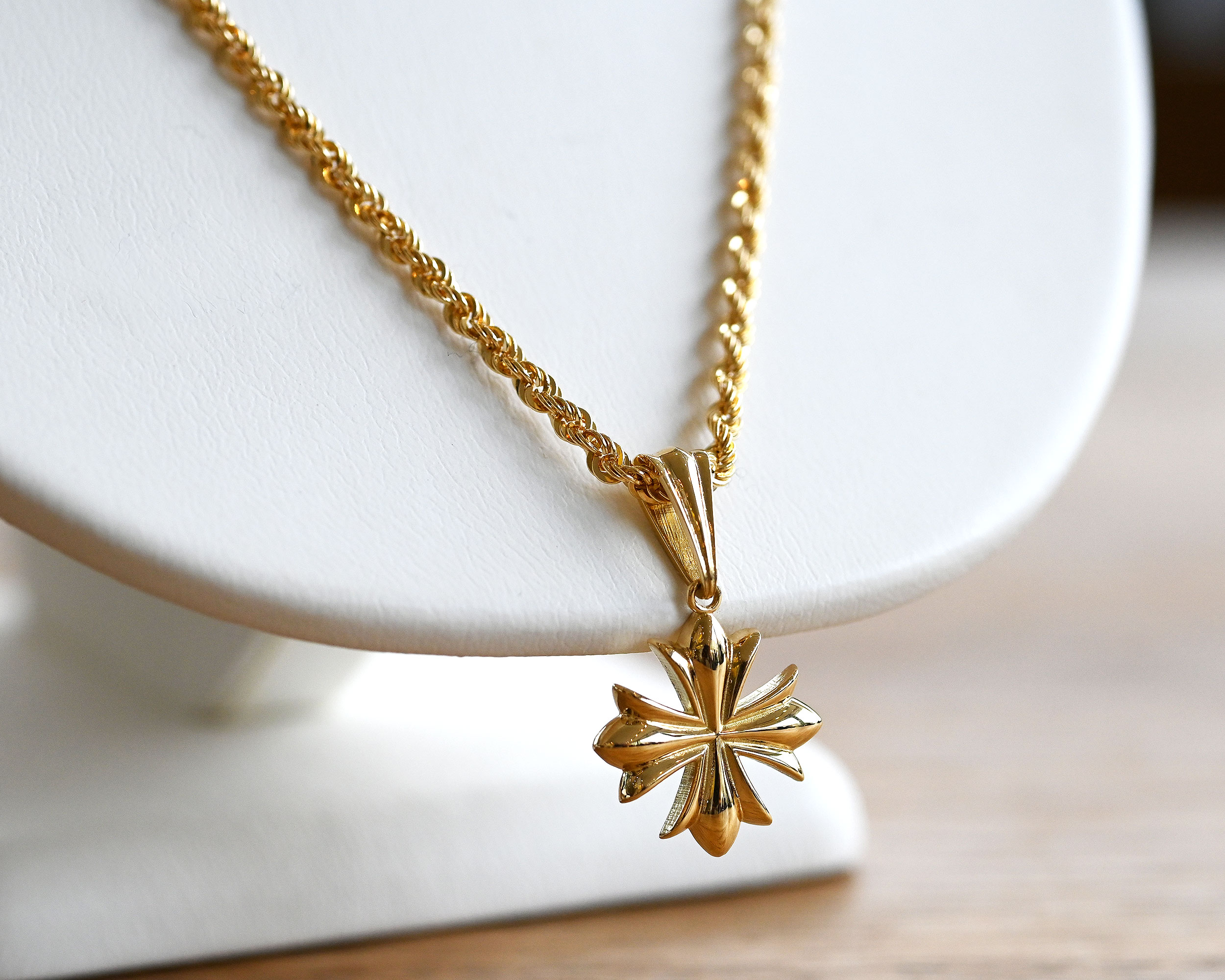 K18ゴールドの美しい輝きを活かしたBullioのミニクロスペンダント。
