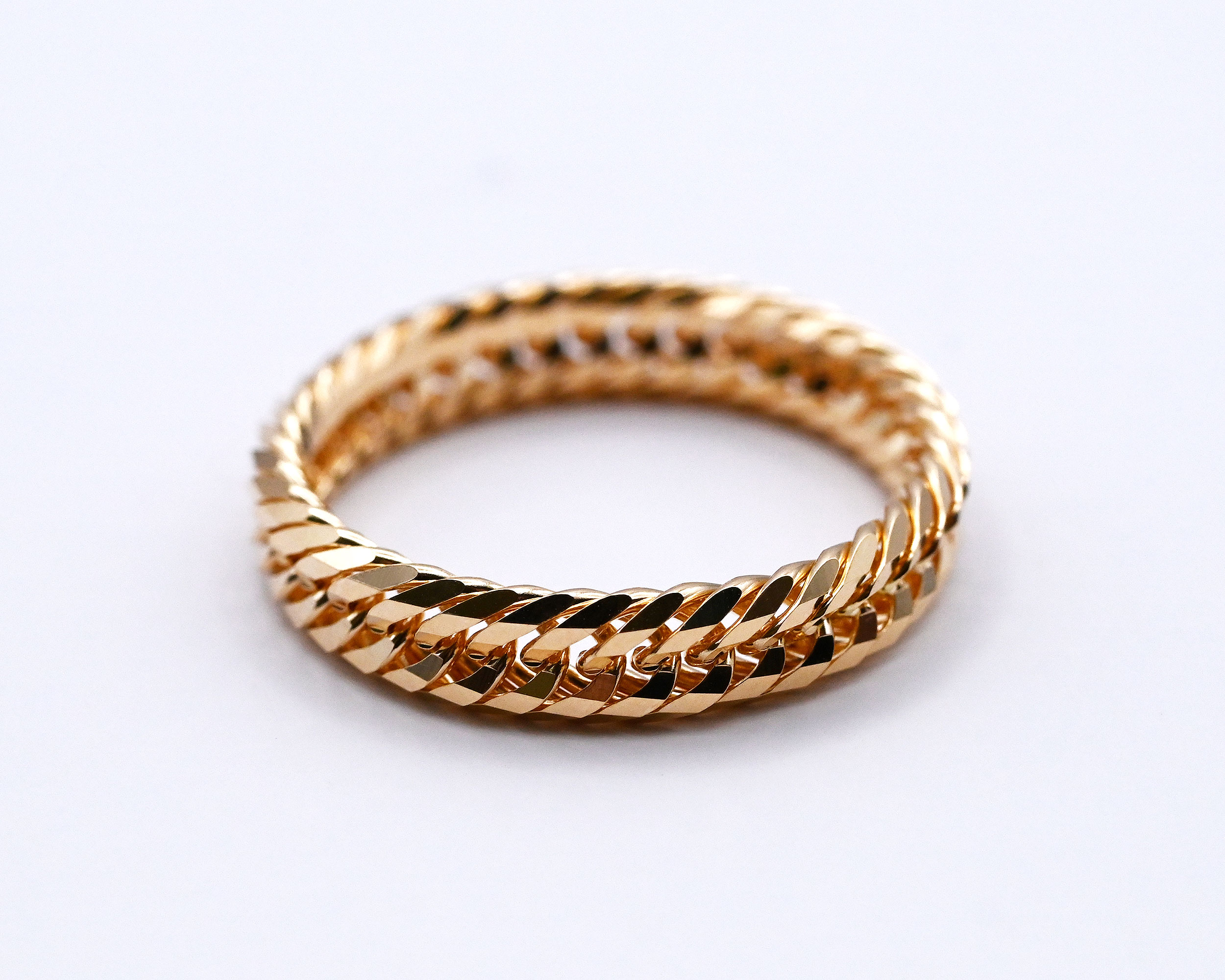12面トリプルカットは、喜平チェーンの中でも人気が高く細かいカットによる輝きが特徴的です。※K18刻印はリング外側に打刻しております。着用時には刻印打刻面を外側にしてお楽しみくださいませ。