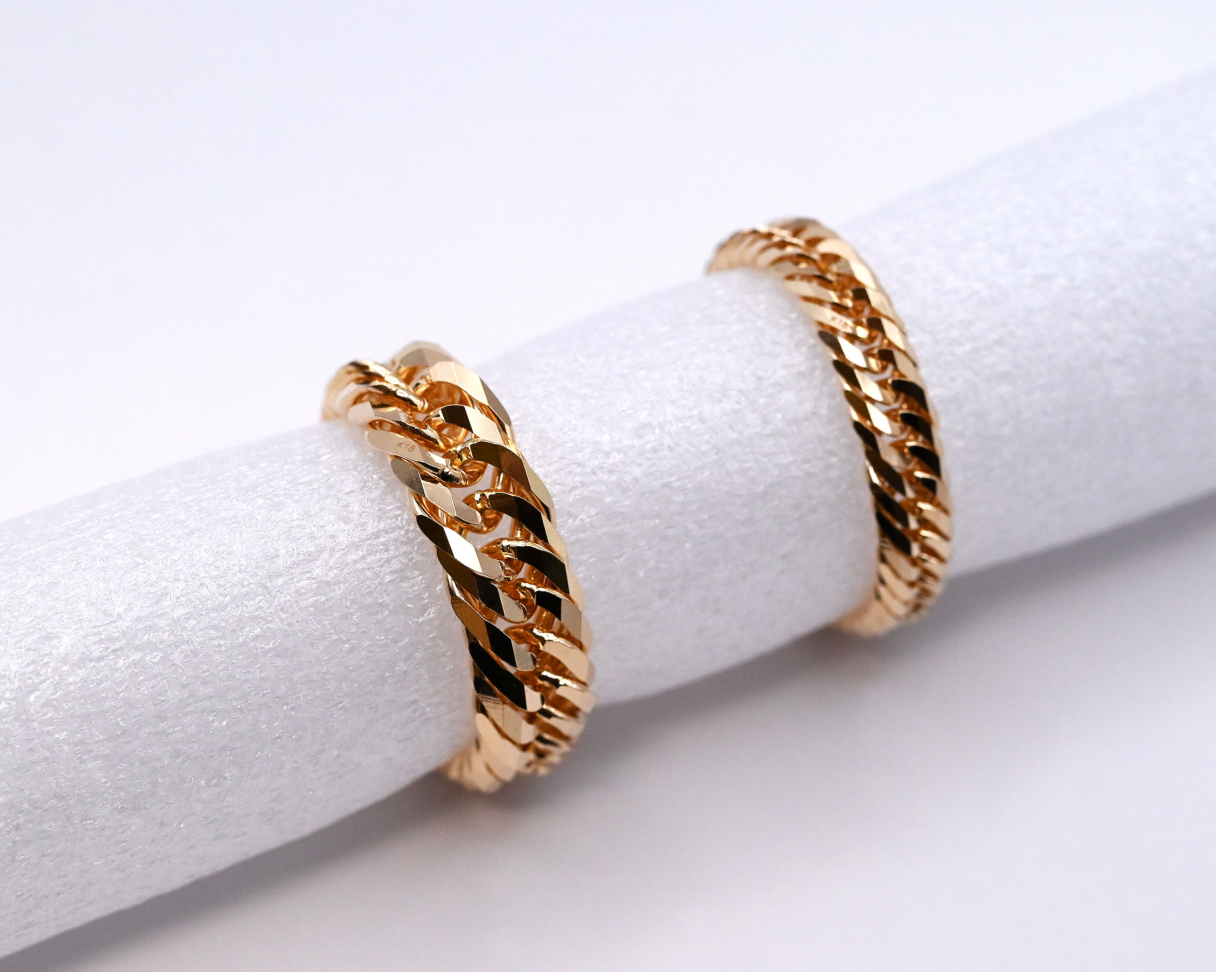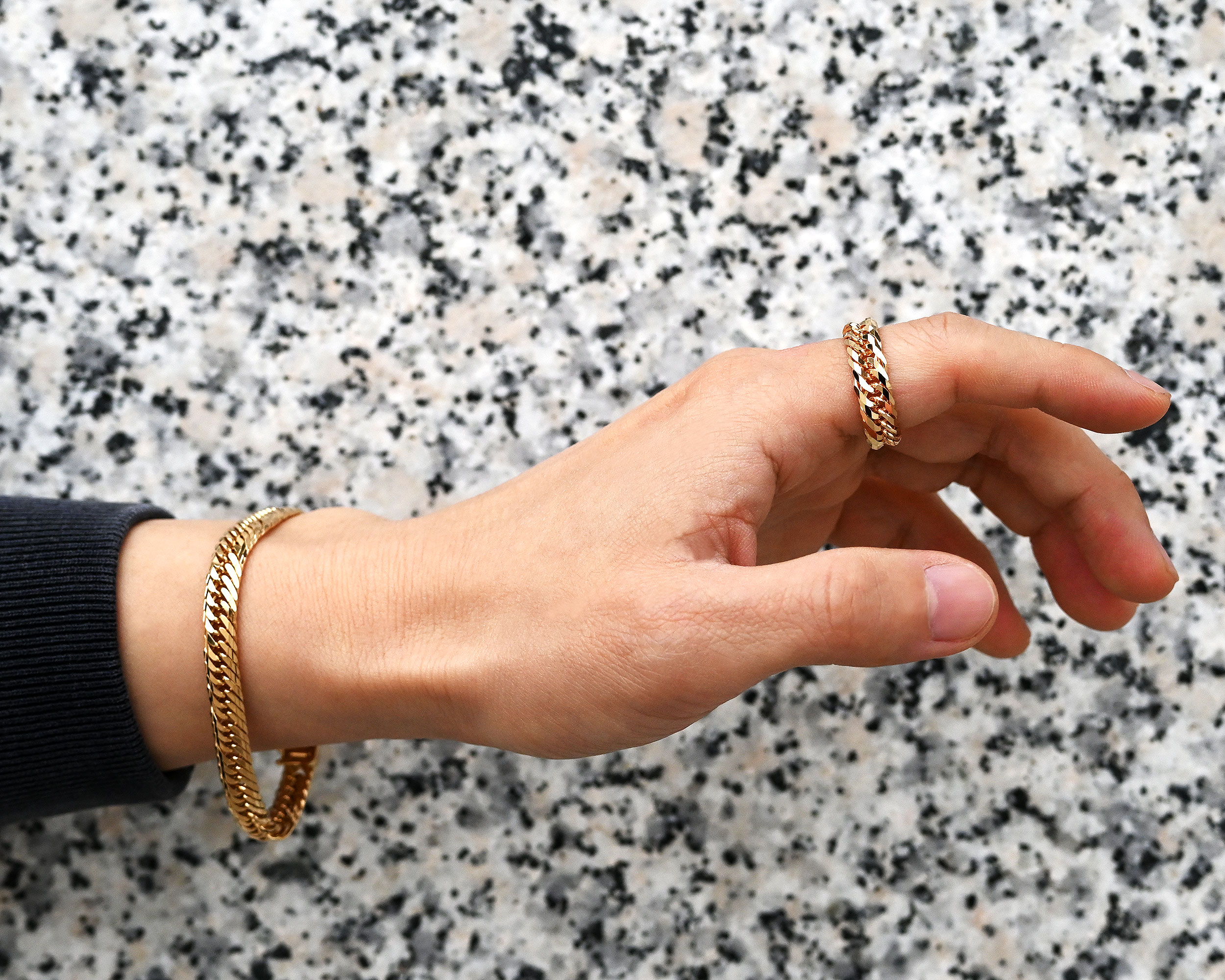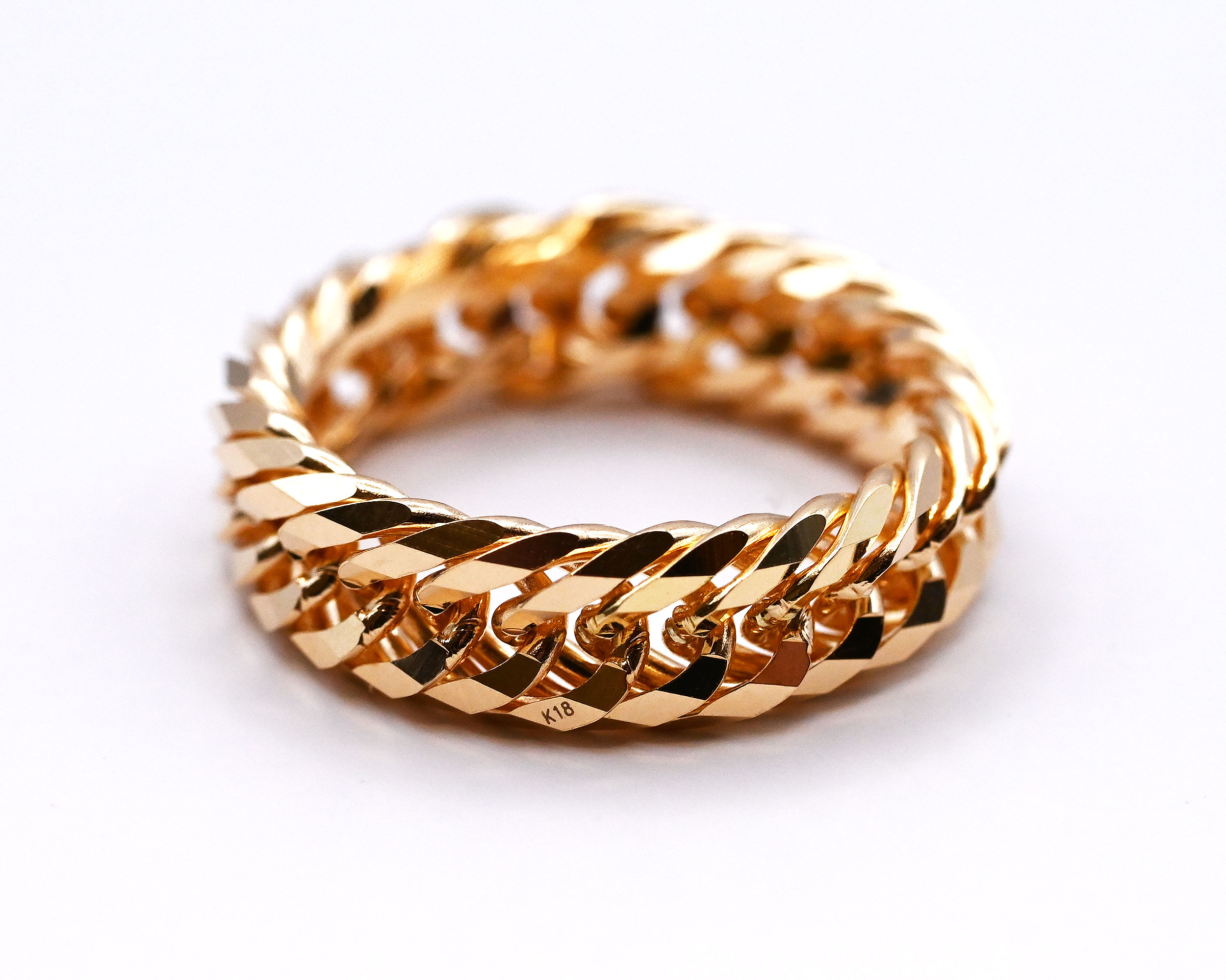 12面トリプルカットは、喜平チェーンの中でも人気が高く細かいカットによる輝きが特徴的です。※K18刻印はリング外側に打刻しております。着用時には刻印打刻面を外側にしてお楽しみくださいませ。