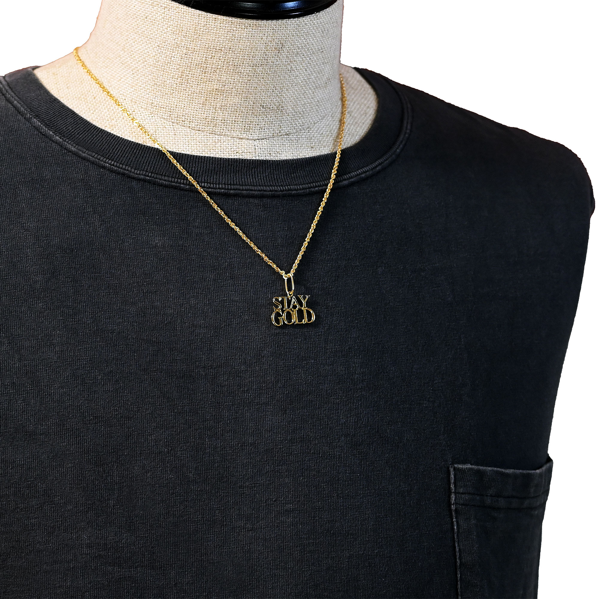 【輝いて】という意味を込めて英文字STAY GOLDと表現されたペンダント。